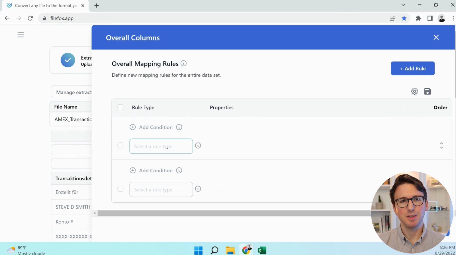 Automatically convert a File A to a File B format in seconds and apply the same rules to unlimited future files.